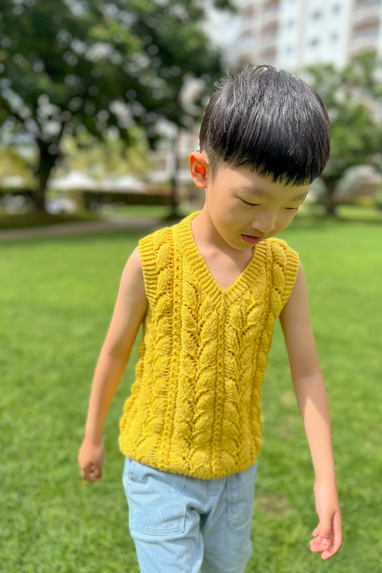 - 사이즈 선택 팁 : 사이즈에 연령을 표시해 두었지만, 가슴둘레에서 여유분 8 ~ 16 cm 정도의 사이즈를 선택한 후, 몸통 기장을 원하는 대로 조절하여 뜨는 것을 추천한다.