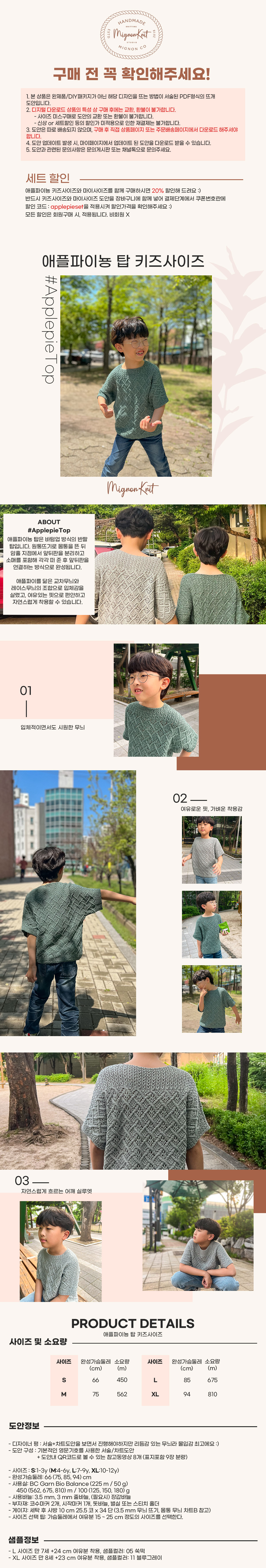- L 사이즈 만 7세 +24 cm 여유분 착용, 샘플컬러: 05 쑥떡