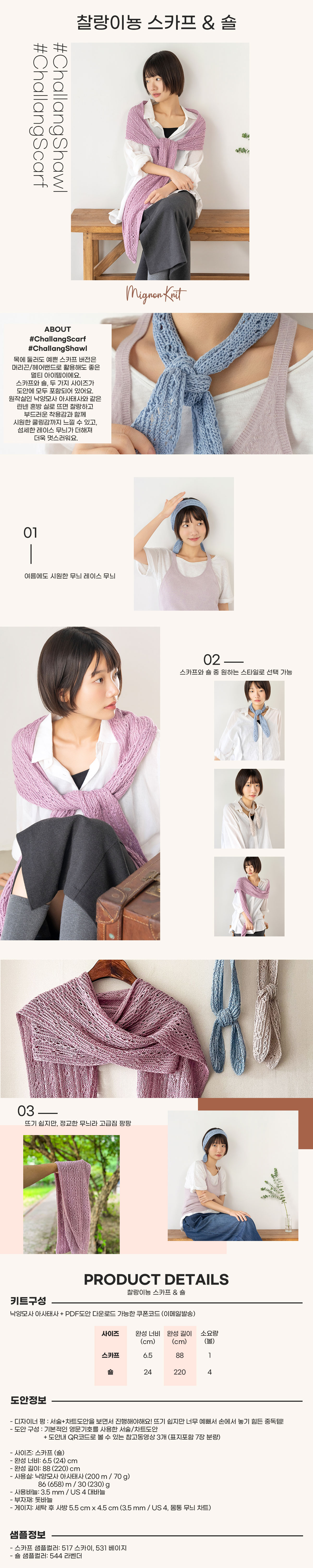 스카프 버전과 숄 버전 두 가지 사이즈가 도안에 모두 포함되어 있어요!
