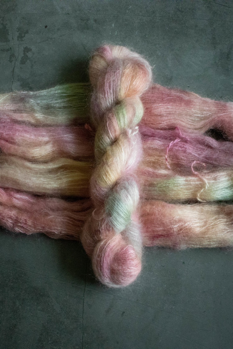 부드러우면서 은은한 광택감과 깊은 색감이 일품인 버지니아얀의 실크모헤어가 미뇽니트 커스텀 색상으로 입고되었습니다,