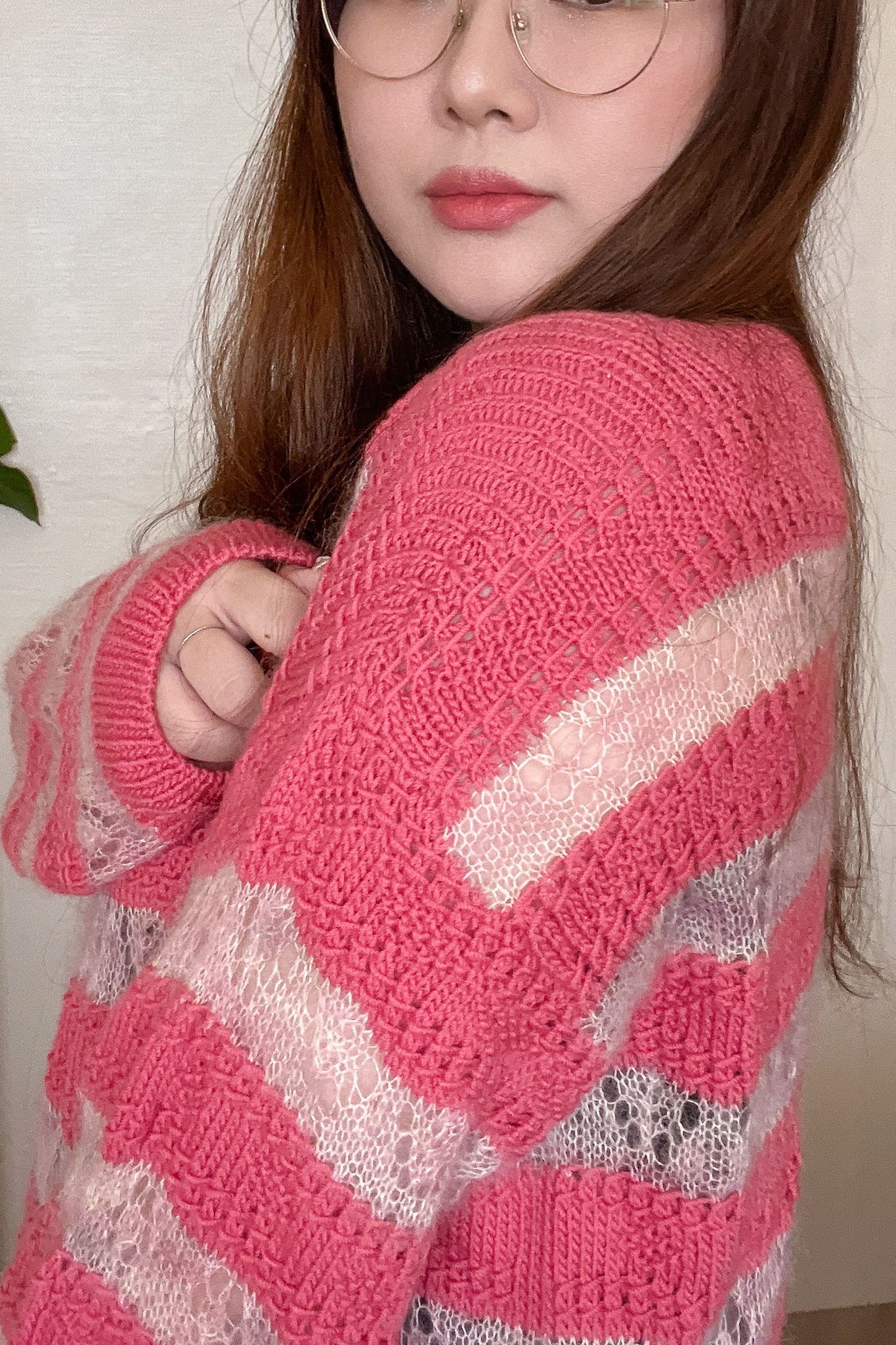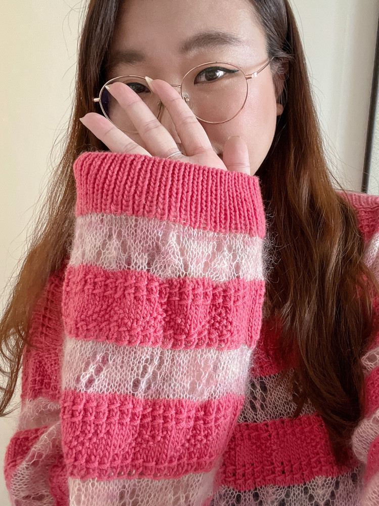 샘플색상 : 울소프트 728 홍색 + 버지니아얀 실크모헤어 핑크뮬리