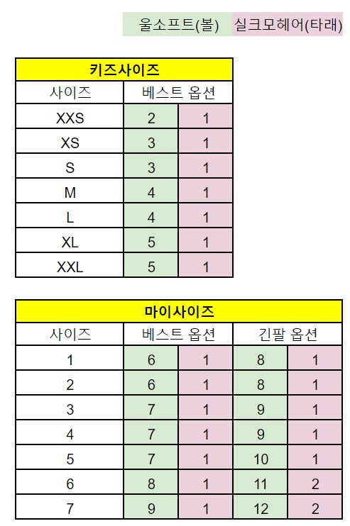 옵션설정의 문제로 울소프트와 실크모헤어 색상을 구매시 직접 기입해주세요!