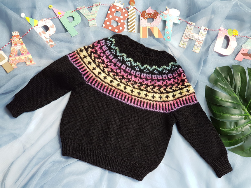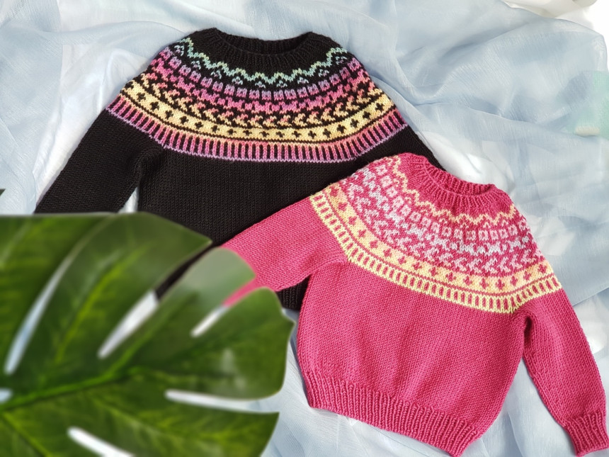 원통뜨기하게 되는 탑다운 배색 요크 풀오버에요.