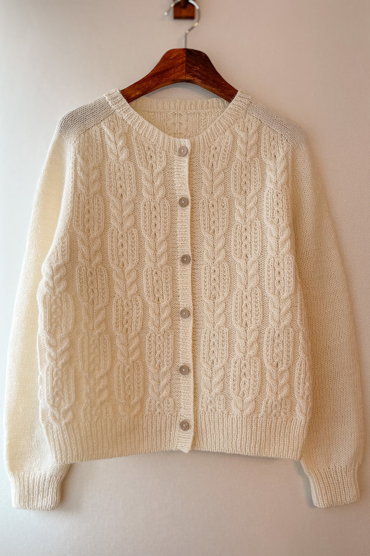 네크라인에서 부터 이어지는 유니크한 꽈배기 무늬와 어깨라인에 핏되는 새들숄더가 맵시를 살려주는 ✨ 탑다운 새들숄더 가디건 폴인뇽 ✨