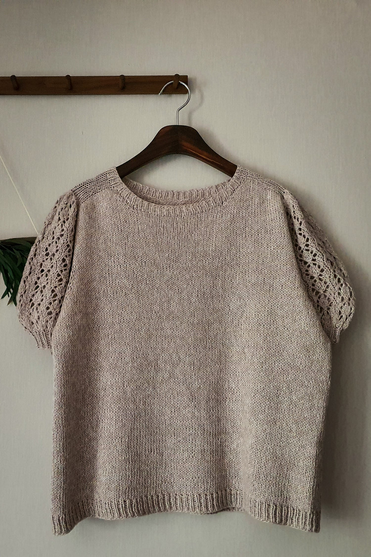 탑다운 새들숄더 형식의 로망이뇽은 넥밴드에서 부터 시작하여 소매와 바디를 한꺼번에 떠내려오면서 소매분리하여 바디만 원통으로 떠내려 온 후, 소매코를 주워 소매를 떠주는 구조입니다.